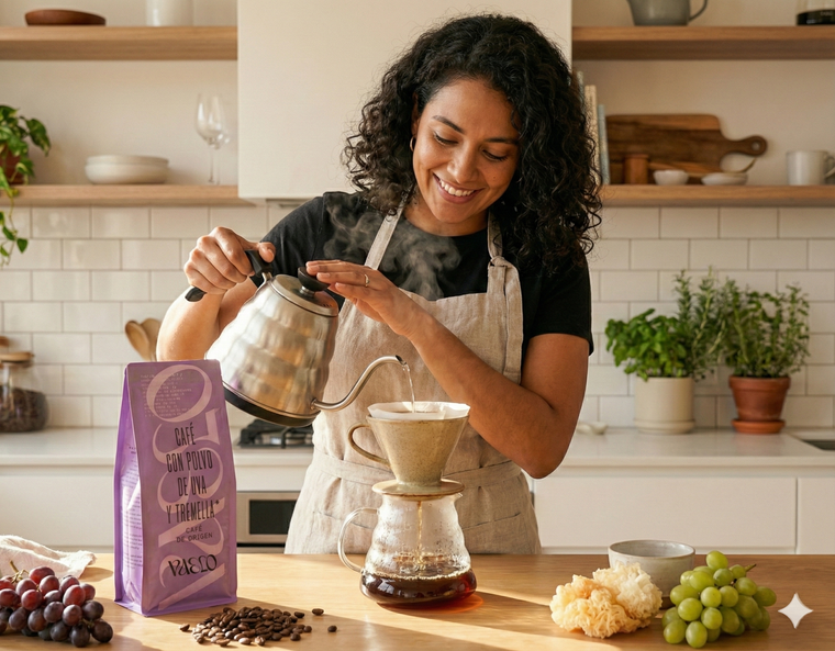 Café funcional con adaptógenos y antioxidantes para mente, piel y bienestar.