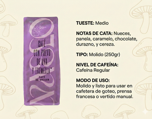 Vaelo combina cafe de origen de la mas alta calidad con ingredientes funcionales como melena de leon, extracto de uva y tremella. Esto crea una experiencia mas suave, enfocada y con beneficios antioxidante - sin alterar el sabor real a cafe.